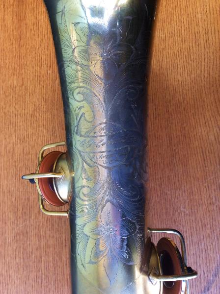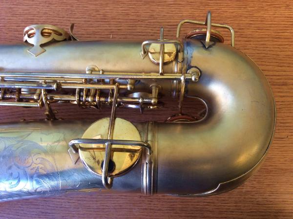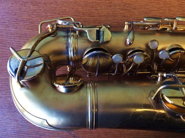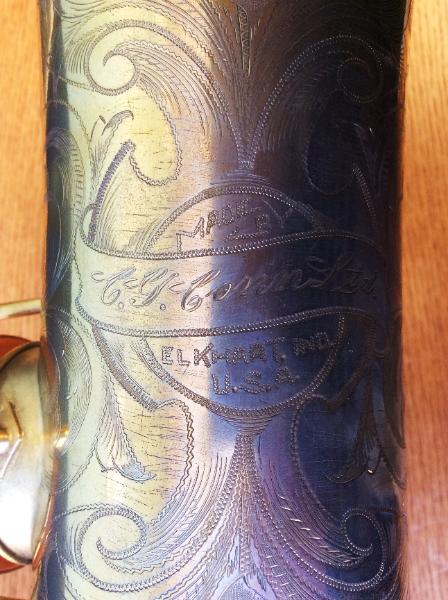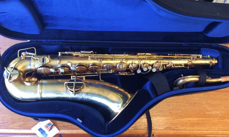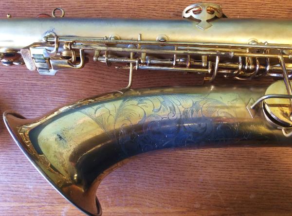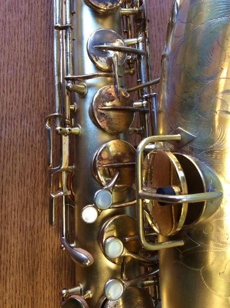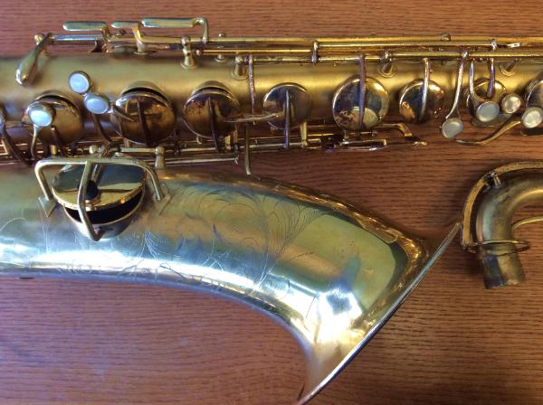 | Gold Plated Conn "Chu Berry" #204905. Completely overhauled in our shop. This tenor has an enormous, rich, textured sound. A totally different experience than playing a modern horn. Think Ben Webster, Coleman Hawkins. But put a modern mouthpiece on it and it roars! |